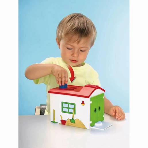 Aparca el camión marcha atrás en el garaje. El obrero quiere cargar el camión con el saco, el barril y la caja. El tejado tiene función de clasificación.