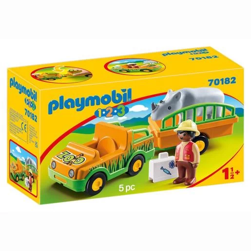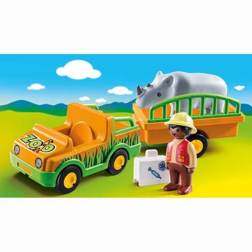 Playmobil – 1.2.3 Vehículo del Zoo con Rinoceronte.