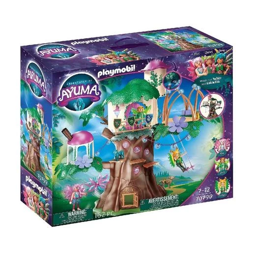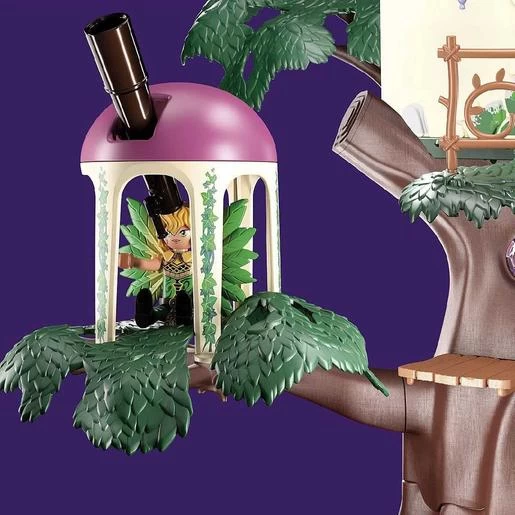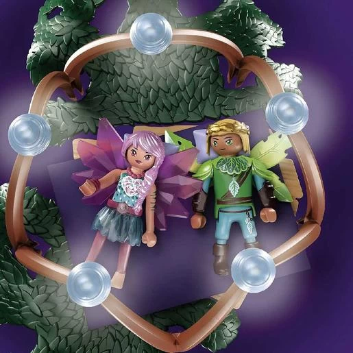 El acogedor árbol de la comunidad de PLAYMOBIL es el refugio de las hadas: Mientras los animales se refugian en la raíz del árbol, las hadas viven en los tres niveles del mismo, miran las estrellas en el observatorio y se reúnen en la sala de la comunidad.