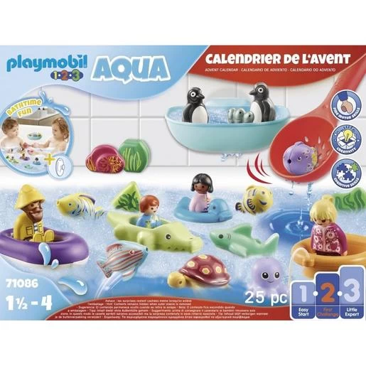 Playmobil – Calendario de Adviento 1.2.3. Diversión en el baño – 71086. ¡Diversión en el baño en temporada de Adviento para los más pequeños! Con una bandeja de captura, varios barcos y, sobre todo, muchos animales para jugar.