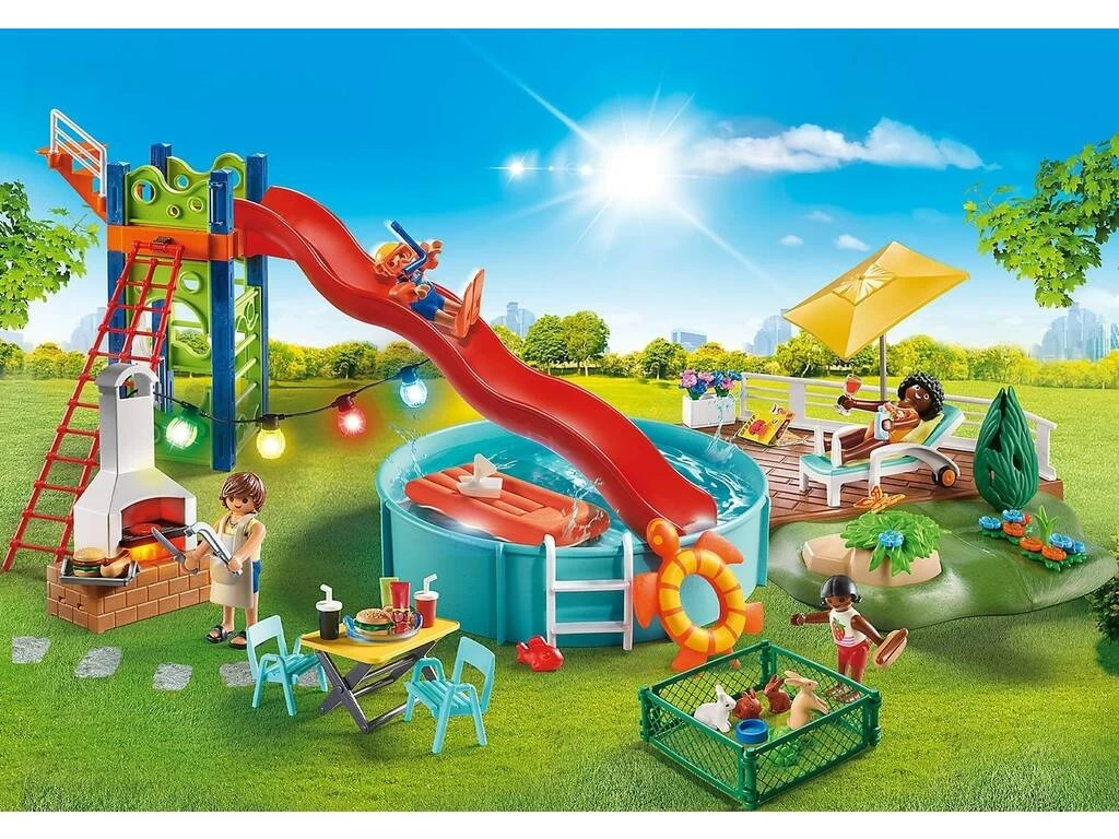 Playmobil Casa Moderna Fiesta En La Piscina Con Tobogán 70987