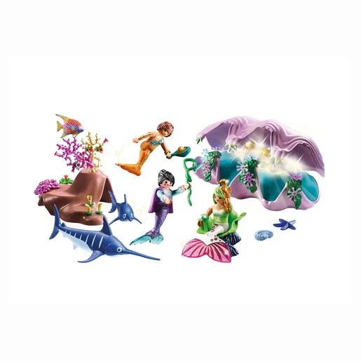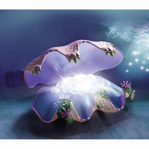 Concha con luz que cambia (se neceSítan pilas 3 x AAA) automáticamente cada 15 minutos. Con perlas luminiscentes para coleccionar y muchos otros accesorios. DimenSíones de la concha cerrada: 17 x 12 x 7cm (LxPxA)