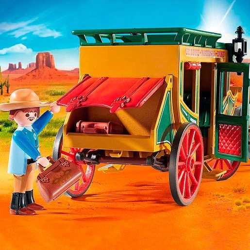 Playmobil – Diligencia – 70013, un playset de Playmobil en el que tendrás que cruzar las praderas del Oeste a toda prisa para llegar sano y salvo a la ciudad.
