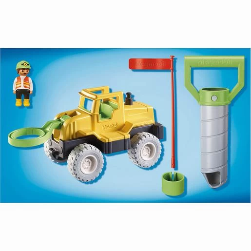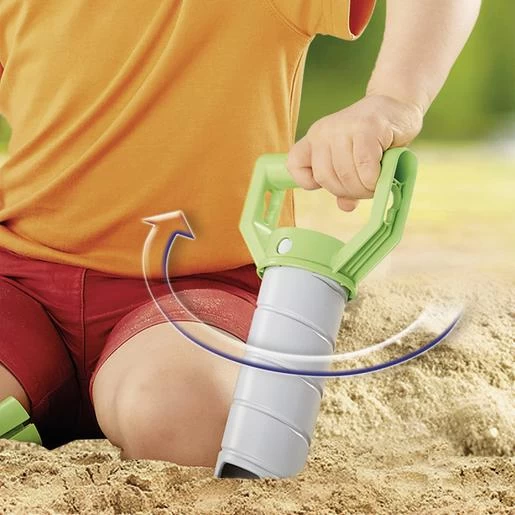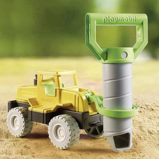 El taladro de arena desmontable se puede utilizar para perforar agujeros en la arena. La bandera PLAYMOBIL se puede utilizar para marcar el castillo de arena o para subir y bajar al obrero en agujeros y túneles. Dimensiones: 28 x 12 x 23cm (LxPxA)