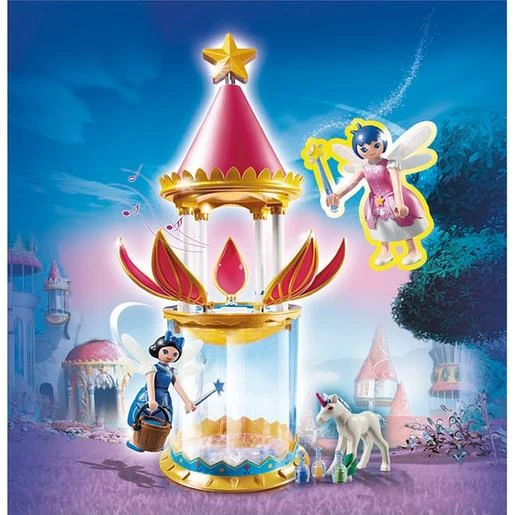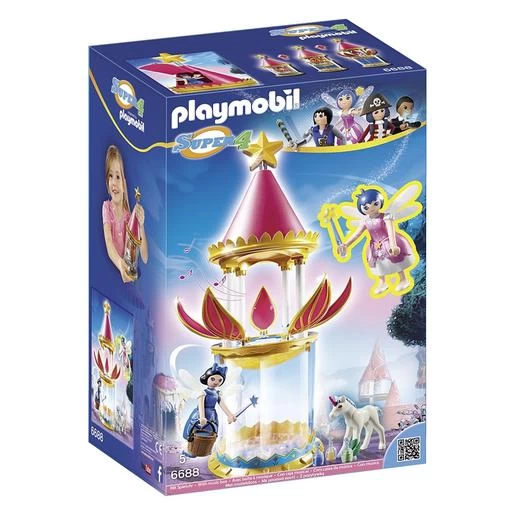 Playmobil – Torre Flor Mágica con Caja Musical – 6688, un set de 45 piezas, de las cuáles 2 hadas (una de ellas es el hada Twinkle de Super 4), 1 unicornio, la torre flor mágica y accesorios.